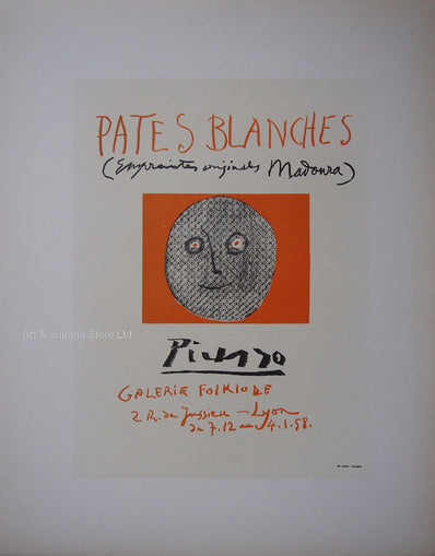 ORIGINAL COLOUR LITHOGRAPH 1959 * By Pablo Picasso * Titled 'Pates Blanches, Galerie Folklore'* Signed in the plate * Published by Andre Sauret, Paris...