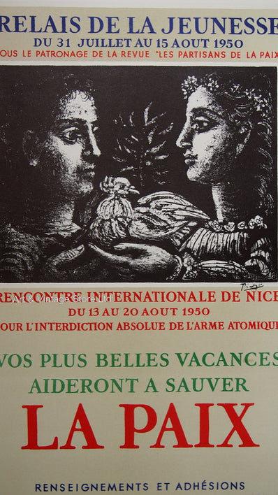 ORIGINAL COLOUR LITHOGRAPH 1959 * By Pablo Picasso * Titled 'Relasi de la Jeunesse'* '..Aideront a sauver La Paix'* Signed in the plate*...
